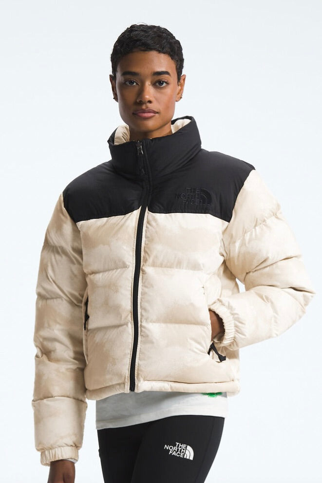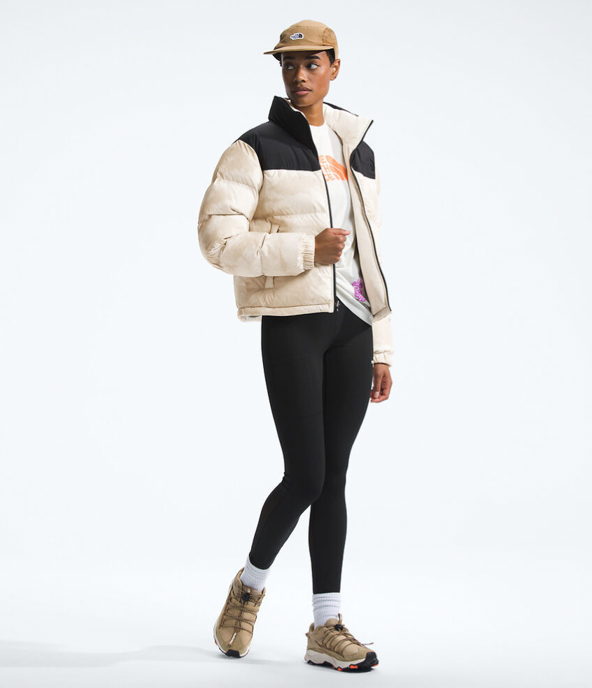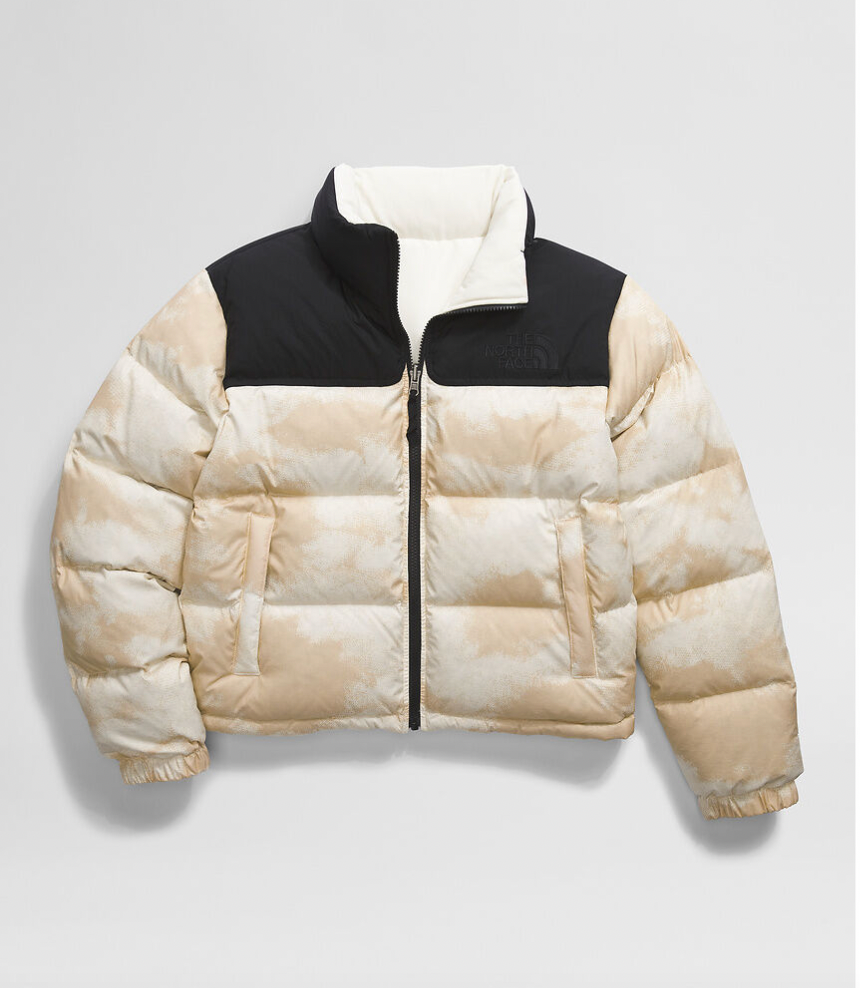 Tththe Nothtrth Fathtce Women's 1992 Crinkle Reversible Nuptse Jacket- White Dune Dye