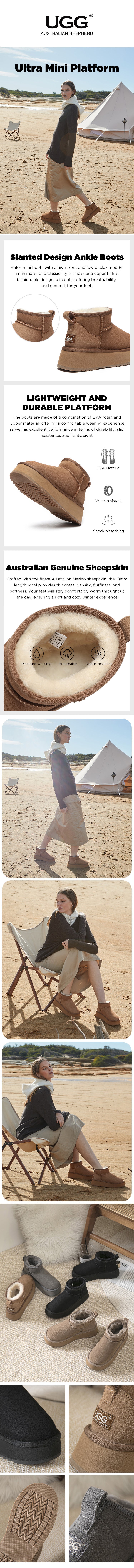 AUSTRALIAN SHEPHERD® UGG Boots Sheepskin Wool Classic Ankle Ultra Mini Platform #AS3038