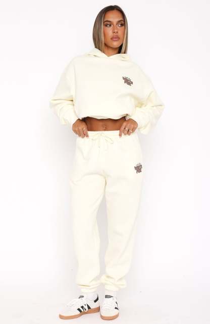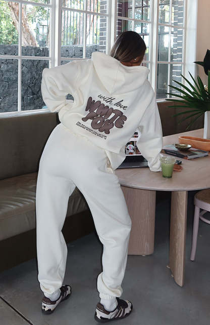 The With Love Always Sweatpants Cream features a high elasticated drawstring waistband, elasticated ankles, side pockets, soft fleece fabric for extra comfort and printed logo on side of leg. You can complete the tracksuit with the matching With Love Always Oversized Hoodie for the perfect off-duty look.