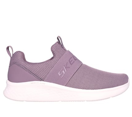 Get a step of comfort with Skechers Skech-Lite Pro - Light Rush. This vegan design features an engineered mesh upper in a laceless fit with a gore crossband and a cushioned Skechers Air-Cooled Memory Foam® insole.