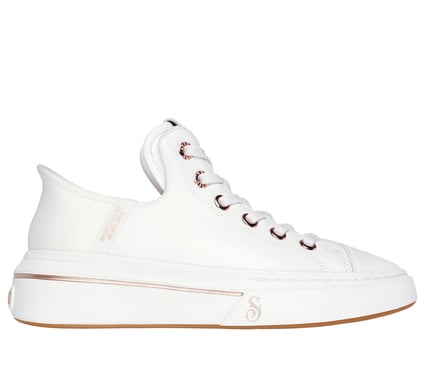 "Step into another level of comfort and the flavor of Snoop with the Skechers x Snoop Dogg collection - sneakers for all walks of life. The Back Story: Riding on the success of the Snoop One OG and from an outpouring of demand for a women's collection, Snoop and his team of designers got right to business. This G-funk all-over monochromatic sneaker features the ease of Skecher Hands Free Slip-ins® wearability. Because We All Love Snoop: Skechers Slip-ins x Snoop Dogg: Premium Leather Snoop One - OG. Tha Top Dogg's finessed court-style sneaker pays tribute to the original, now with solid premium leather that flows all the way through the Skechers Hands Free Slip-ins® contoured heel panel (love that Heel Pillow™.) Rose gold trim, Skechers Air-Cooled Memory Foam® insoles, and stretch laces make it easy to Just Slip In™, Snoop style."