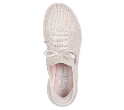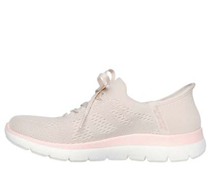 Pick up the pace with increased ease-of-wear and platinum comfort wearing Skechers Hands Free Slip-ins®: Summits - New Daily. Designed with our exclusive Heel Pillow™, this vegan style features a Stretch Fit® engineered knit upper with fixed laces, metallic midsole trim and a cushioned Skechers Air-Cooled Memory Foam® comfort insole.